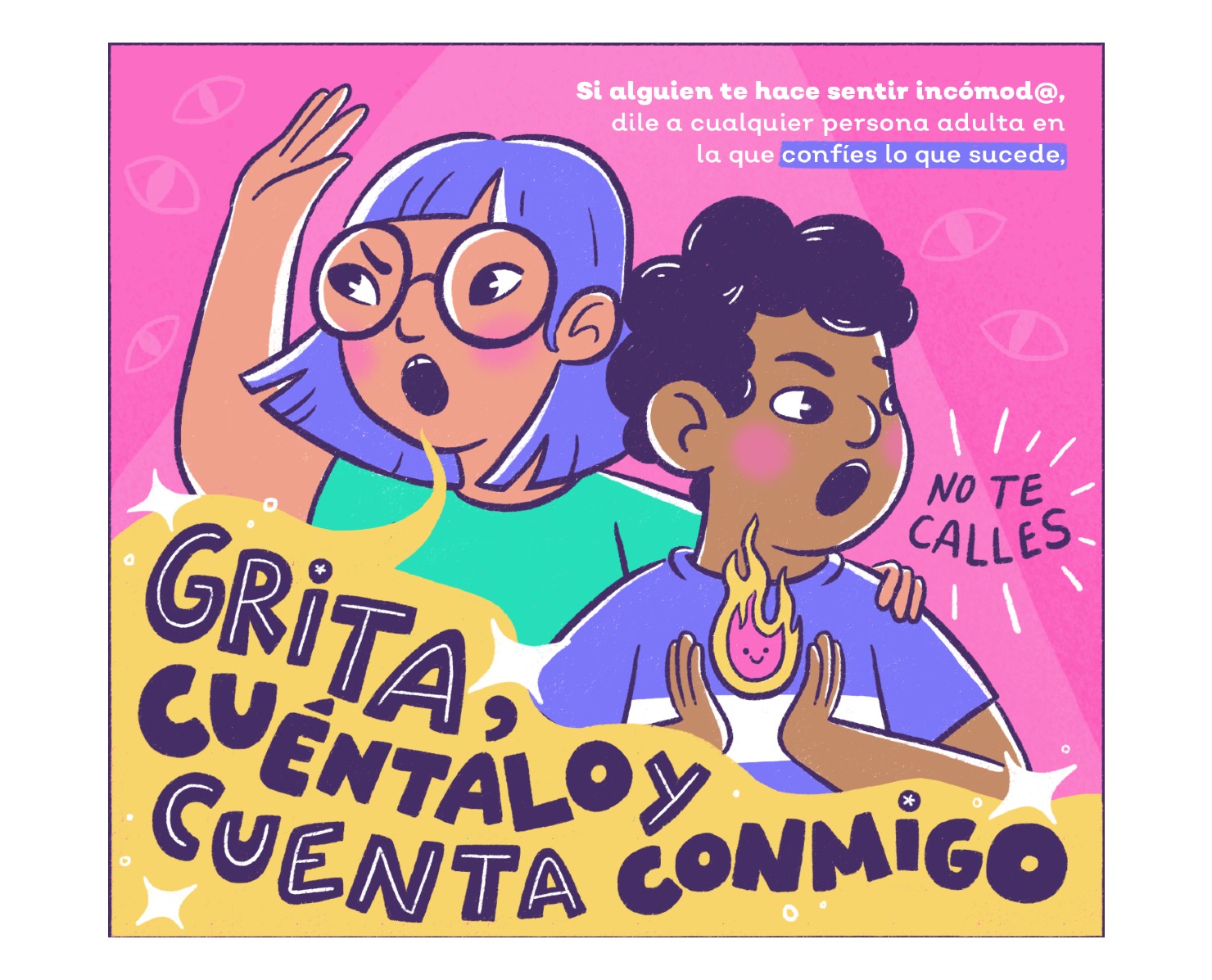 El ejercicio tuvo como finalidad dar a conocer diversas estrategias de autocuidado para la prevención del abuso sexual infantil. Se realizarón diferentes piezas como trípticos con sus versiones impresas, piezas gráficas para redes sociales, juego de serpientes y escaleras en formato extendido, entre otros.